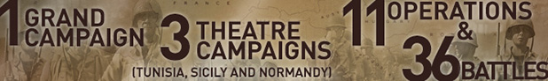 - 1 Grand Campaign, 3 Theatre Campaigns (Tunisia, Sicily and Normandy), 11 Operations and 36 battles