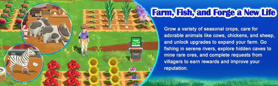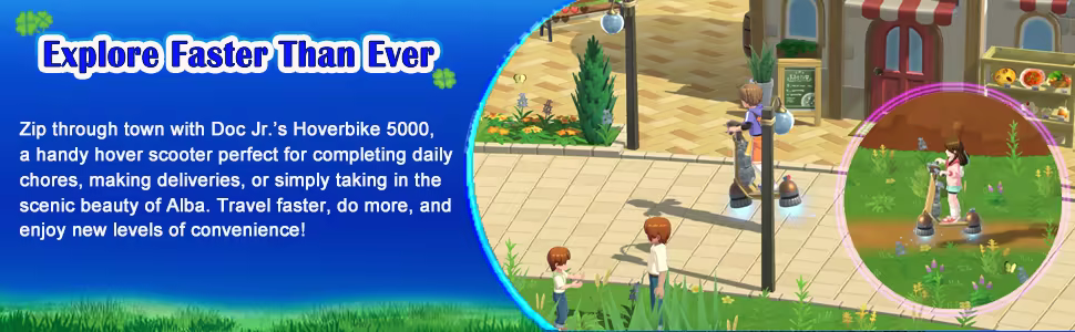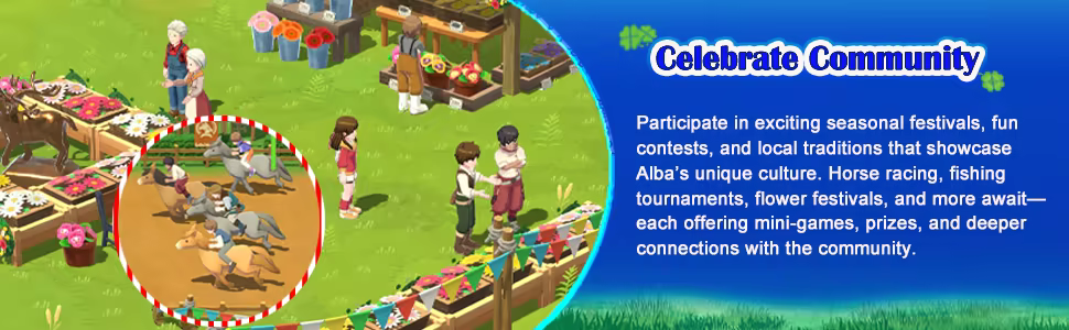Harvest Moon: Home Sweet Home Special Edition invites you to leave behind the hustle and bustle of city life for the charm and simplicity of Alba Village — your childhood hometown. Nestled among lush greenery and sparkling rivers, Alba is known for its fresh-caught fish, delicious homegrown veggies, and warm-hearted community.