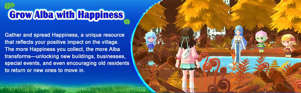 But Alba has seen better days. With a dwindling population and an aging community, the village is in need of a fresh start. It’s up to you to breathe new life into Alba and transform it into a thriving, welcoming place once again. Reconnect with old friends, meet new faces, and help turn this quiet village into a lively haven for tourists and future residents alike!