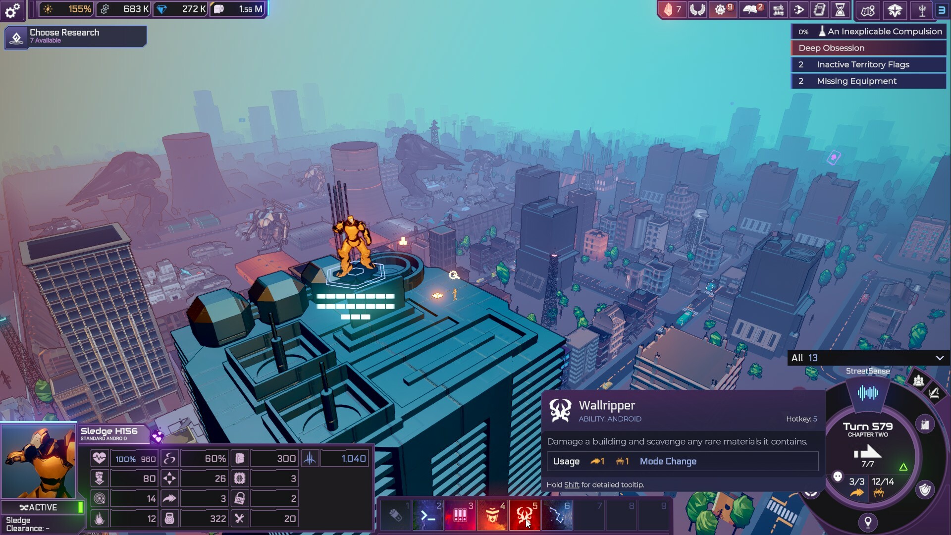 Unlock new technologies and options by exploring the city and engaging with its many dangers and opportunities – learn like a real Machine Intelligence might, through trial and error, with failure and experience often being the greatest teacher. Will you reverse-engineer equipment you’ve stolen from inattentive security officers to strengthen your forces? Are you the type to sneak into military bases to hack and hijack the minds of the mech pilots who would otherwise threaten you? What will you do with the ongoing research taking place in genetics labs? How will you engage with nomads and black market dealers with access to those dwelling in the wastelands beyond the city walls?