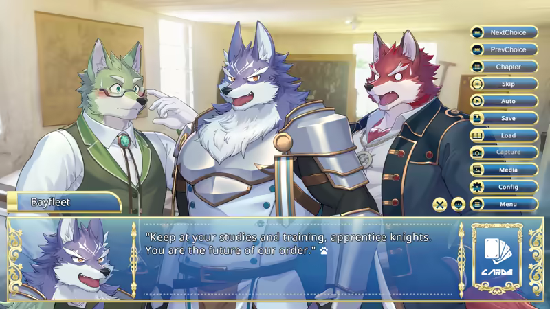 In ""Knights College 2,"" all actions such as conversations and movement are made through card selections.