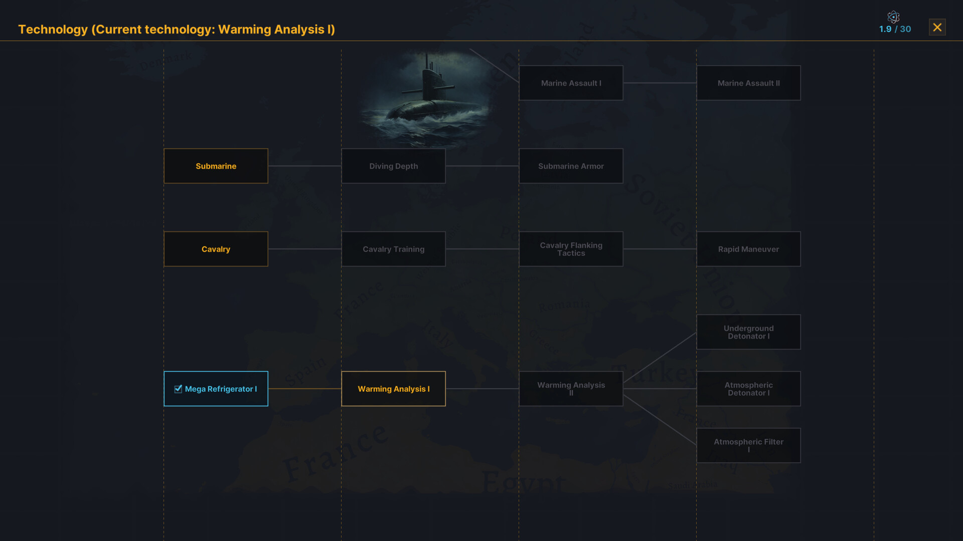 Scenario "Consequences", year 1926. Global warming begins on the planet, and the rising temperatures are causing the population to die out. Research new technologies to discover the cause of the warming and save humanity.